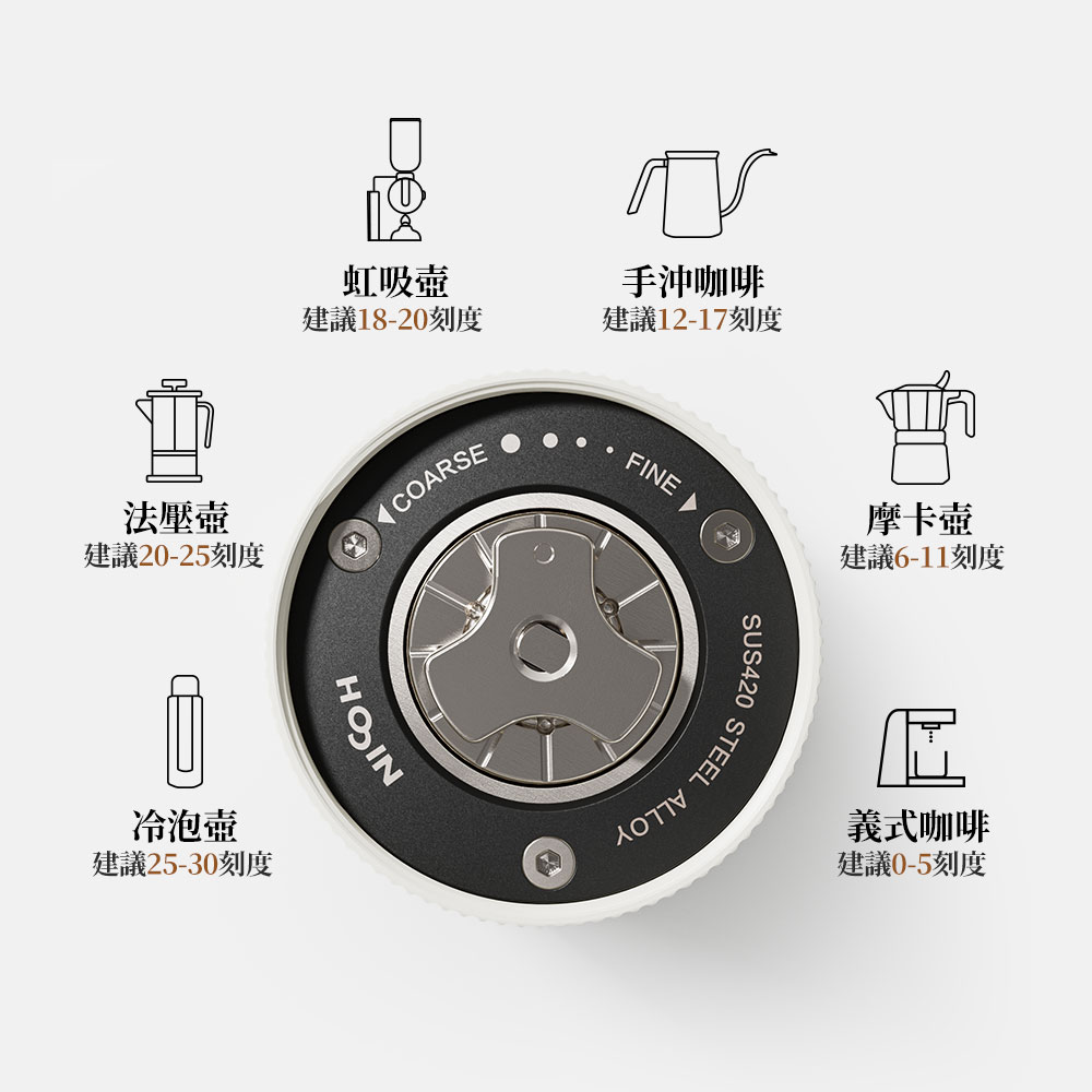*磨芯24段調整可磨細到濃縮咖啡機用細度